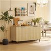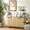 HOMCOM 55 W x 30-in H Natural Oak Particleboard Modern Sideboard w/ 4 Fluted Doors and Black Metal Legs