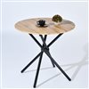 - Modern warmth: soft faux suede chairs and wood tabletop with black metal base