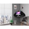 Get the job done with a desk that doesn’t cramp your workspace or compromise your space. The Bradley floating corner desk in black is perfect for your in-home out of the office work area with space for a desktop computer, laptop, and little shelf nook up top for keeping pens or office accessories handy. An open sliding drawer holds a keyboard or laptop, and keeps the area efficient and clean. This piece easily fits into any corner and blends seamlessly with any existing decor.