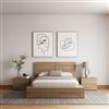 Elevate your bedroom with modern sophistication and minimalist design. This 4-piece bedroom set features a sleek platform bed with an elegant headboard, along with two functional 2-drawer nightstand. The extra-wide bedside surfaces provide both style and convenience, ideal for your books or charging devices. The versatile rectangular design effortlessly complements various decor styles, while the centre supports and hidden plinth base create a unique floating effect in your room. This platform bed is compatible with your preferred mattress (sold separately), eliminating the need for a box spring, thanks to the reliable centre supports. Assembling your new bed frame with headboard and nightstand is a breeze, requiring just a screwdriver. We'll deliver your stylish and easy-to-assemble bedroom set right to your doorstep, ensuring convenience every step of the way. Upgrade your bedroom with the James Collection, modern, minimalist, and perfect for your space.