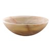 Made from one of our most precious stones, Novatto's green onyx vessel will add special character and charm to your bath. Our green onyx vessels come from around the world, giving you a one-of-a-kind bath masterpiece. Natural stone cannot be compared to everyday synthetic porcelain and ceramics. Honed and hand polished to perfection, this round 17-in vessel is unique in tones of brown and light green. Onyx is also translucent letting light easily pass through it. If you are looking to make a statement, place lights in the counter underneath the sink to give it an ambient glow! Since onyx is from Mother Nature, each sink will vary slightly in color and veining. For best cleaning results, a soft cloth with mild soap and water or a non-abrasive glass cleaner is recommended. A stone sealant should be used to protect the surface and allow for easier cleaning. Constructed of solid brass, the included chrome umbrella drain has two rubber seals, a plastic spacer, and brass fastener.