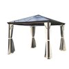 Outsunny The Pavilion Brown and Beige Metal Square Permanent Gazebo with Screens and Polycarbonate Roof - 9.8 x 9.8-ft
