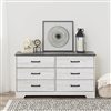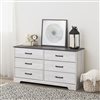 Prepac Rustic Ridge 53.25 W x 28.5-in H Washed White 6-Drawer Rustic Double Dresser w/ Black Metal Handles
