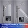 - Three-way diverter allows handheld showerheads and fixed showerheads to be used separately or together