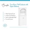 The curved detailing and crisp white finish of the Bristol Arched Linen Cabinet create an upscale look, while two open display shelves showcase decorative items. Behind double doors, four interior shelves provide ample storage for bathroom essentials. The sturdy MDF construction supports up to 20-lb per shelf, making this storage cabinet ideal for towels, toiletries, and supplies. Measuring 22.6-in W x 11.5-in D x 52.5-in H, it maximizes vertical space without overwhelming your room. Built-in wall anchors ensure stability, letting you safely store up to 100-lb of bathroom necessities while maintaining a clean, organized space.