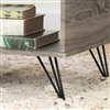 This low table, designed in a trendy, modern style, will go great with your living room furniture. You get lots of room for storage, and its straight lines and open spaces give it a light sleek look. The rich finish and sturdy hairpin legs will add a warm, inviting ambiance to the room.