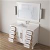 - Includes: mirror, drain and quartz countertop with undermount sink