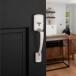 - Outdoor entry handleset with indoor reversible lever non-locking, deadbolt not included