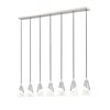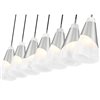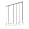 Infuse sophistication over a kitchen island or large dining table with this impressive modern seven-light linear chandelier. Shrouds of brushed nickel finish metal encircle swirling artisan glass, creating a chic curve that captures attention in any setting.