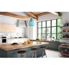 An eye-catching one-light pendant perfectly encapsulates the modern aesthetic. The tapered bell-shaped shade is made from clear blue glass, suspended from a steel frame with a sleek brushed nickel finish. The fixture brings a chic cutting edge to a contemporary kitchen or dining room.