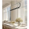 Matte black aluminum begins a design journey leading to a festive, charming look in lighting as this seven-light LED chandelier fulfills multiple functions. Highlight island venues and other horizontal settings with an open metalwork motif beginning with an airy oval body lined with an acrylic diffuser. Cylinder elements finish a crafty style, as LED lighting dims to varying illumination levels and creates custom mood lighting.