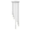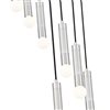 A spiralling effect is created with the staggered lights featured on this modern seven-light round chandelier. Each light features a braided black cord and an elongated tube, with a petite light that casts inviting ambiance over your entry, living or dining room. A brushed nickel finish adds gleaming elegance and ensures a versatile look to complement surrounding decor.