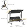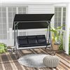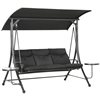 Outsunny Black 3-Seat Outdoor Swing Bench with Adjustable Canopy and Coffee Tables