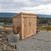 The 8-ft x 4-ft double door garden saver lean-to shed is just what you need to store your ever-growing arsenal of gardening tools and seasonal outdoor equipment. The double door design gives you easy access to its large interior storage space and features a 96-in high front wall, great for maximizing your space! No dangerous, time-consuming cutting is required, simply screw or nail components together with the supplied hardware. Product ships unstained but accepts a wide range of finishes to help you create a personalized look. Unstained wood will weather to a silver grey colour.